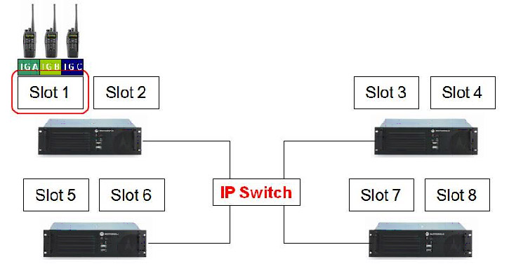 采用IP聯(lián)網(wǎng)的方式將4臺XIR8200數(shù)字中轉(zhuǎn)臺組成單基站集群通訊系統(tǒng)。最多支持8個語音集群信道和16個數(shù)據(jù)信道。用戶最多容量可達(dá)800個。不需要常規(guī)集群系統(tǒng)的控制信道,可以使用全部的8個時隙,不浪費(fèi)系統(tǒng)的時隙,無需申請及準(zhǔn)許機(jī)制。當(dāng)新的呼叫開始時,休閑時隙會轉(zhuǎn)移到一個新的空閑時隙上,系統(tǒng)通知所有空閑的對講機(jī)轉(zhuǎn)移到空閑時隙上來,原有的空閑時隙轉(zhuǎn)換為通話時隙,開始在這個通話時隙上中繼語音通信。當(dāng)通話中止時,通話時隙會通知對講機(jī)新的空閑時隙或相關(guān)時隙。